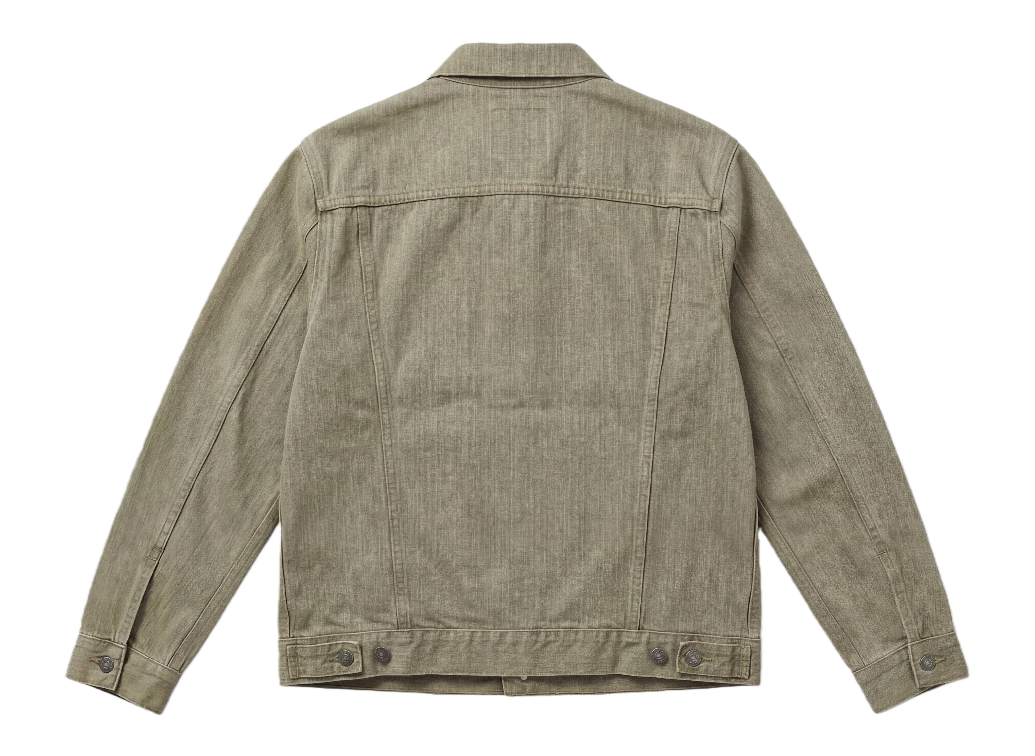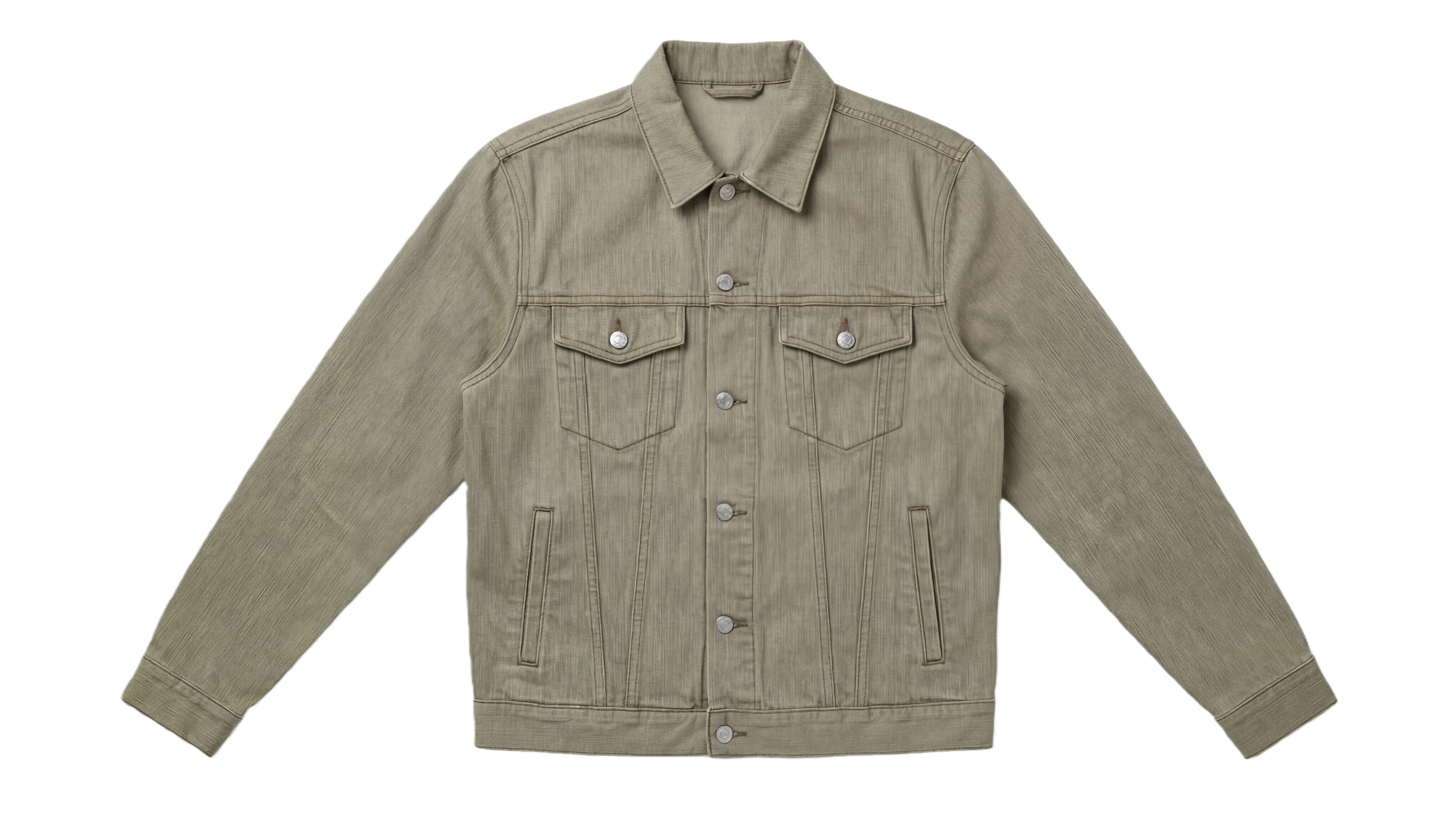 A men’s denim jacket crafted from premium denim with a smooth texture and refined vertical grain. Designed with a timeless silhouette and clean construction.